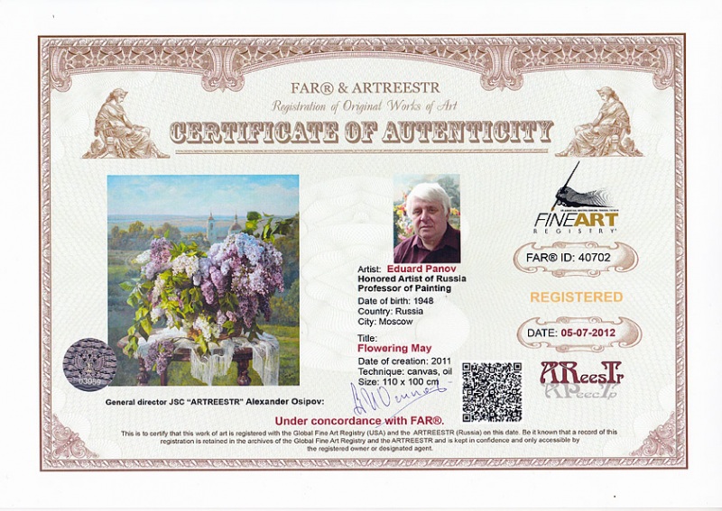 Online система регистрации арт-объектов artreestr / Сертификаты произведений членов «АРТ реестра» / Панов Эдуард Парфирьевич / Цветущий май