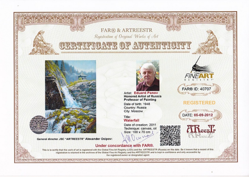Online система регистрации арт-объектов artreestr / Сертификаты произведений членов «АРТ реестра» / Панов Эдуард Парфирьевич / Водопад