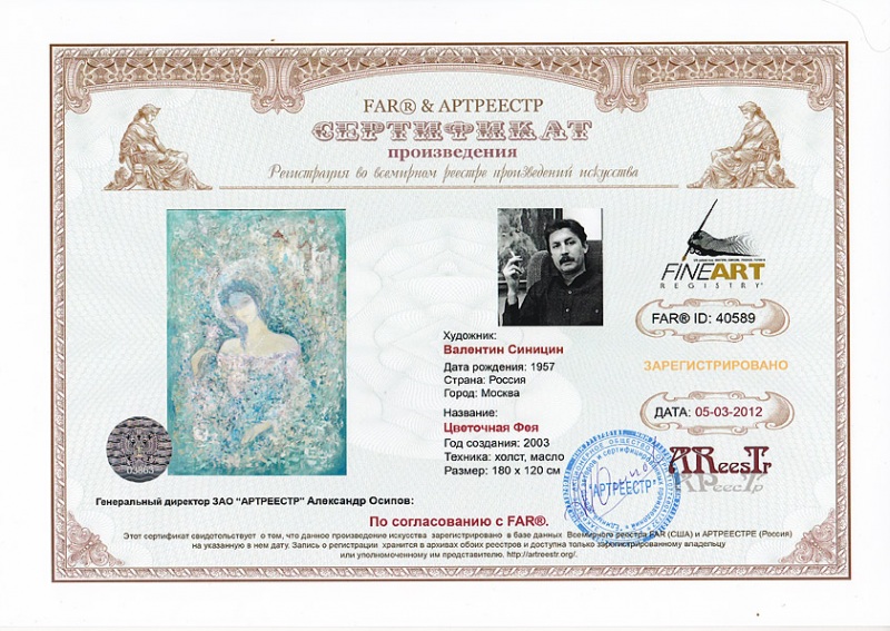 Online система регистрации арт-объектов artreestr / Сертификаты произведений членов «АРТ реестра» / Синицин Валентин Валентинович / Цветочная Фея