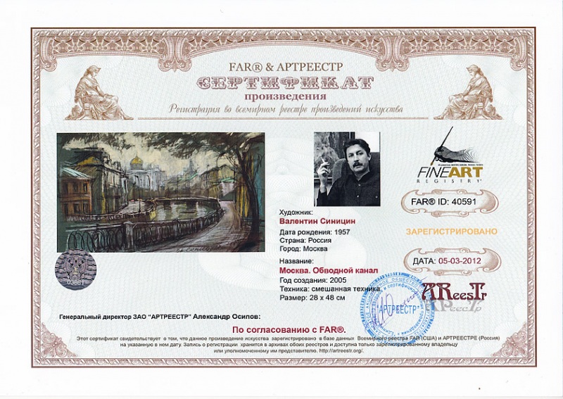 Online система регистрации арт-объектов artreestr / Сертификаты произведений членов «АРТ реестра» / Синицин Валентин Валентинович / Москва Обводной канал