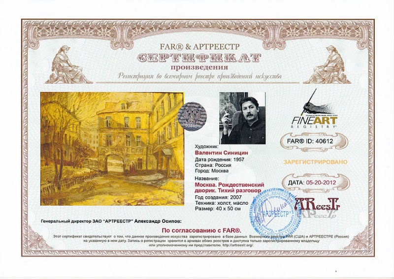 "Единый реестр авторов и сертифицированных произведений искусства"
