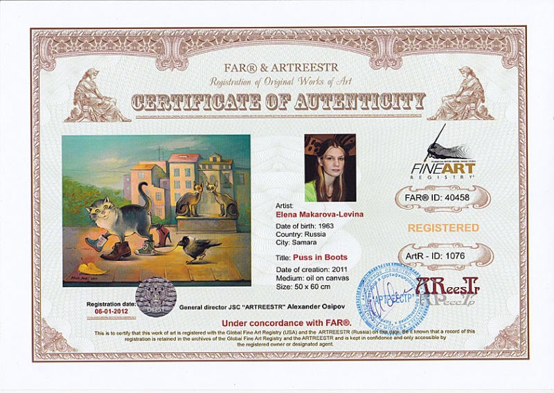 Online система регистрации арт-объектов artreestr / Сертификаты произведений членов «АРТ реестра» / Макарова-Левина Елена / Кот в сапогах