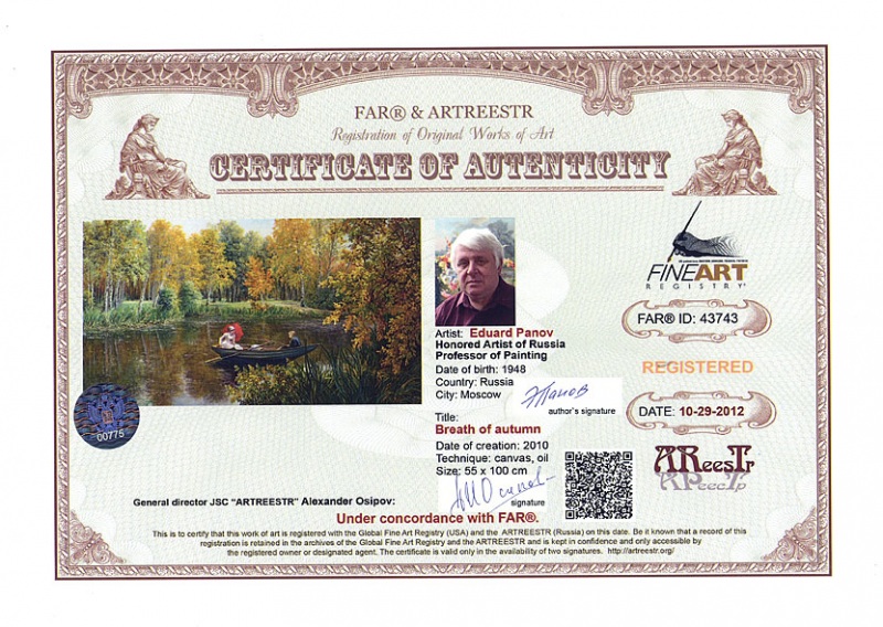 Online система регистрации арт-объектов artreestr / Сертификаты произведений членов «АРТ реестра» / Панов Эдуард Парфирьевич / Breath of autumn
